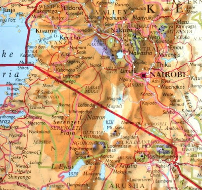 Each autumn in southern Indiana, I ride the "Hilly Hundred." It's a two-day, 100-mile ride through the Hoosier state's beautiful hills amid fall foliage. As I've been examining Google Earth and topographical maps like the one above, I'm dubbing our upcoming excursion the "Hilly Kenya 600."